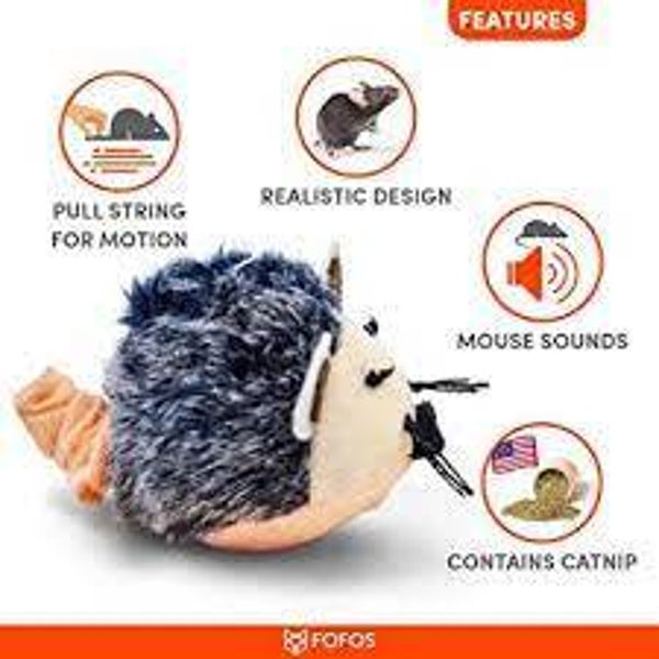 De Fofos Schuddende Muis met Geluid Grijze kattenspeeltje is een stoffen kattenspeeltje dat zelf geluidjes kan maken en kan bewegen. Trek aan het touwtje en deze muis beweegt vanzelf! Daarbij maakt hij ook een leuk geluidje dat de aandacht van de kat zal trekken. Dit speeltje staat garant voor urenlang speelplezier!