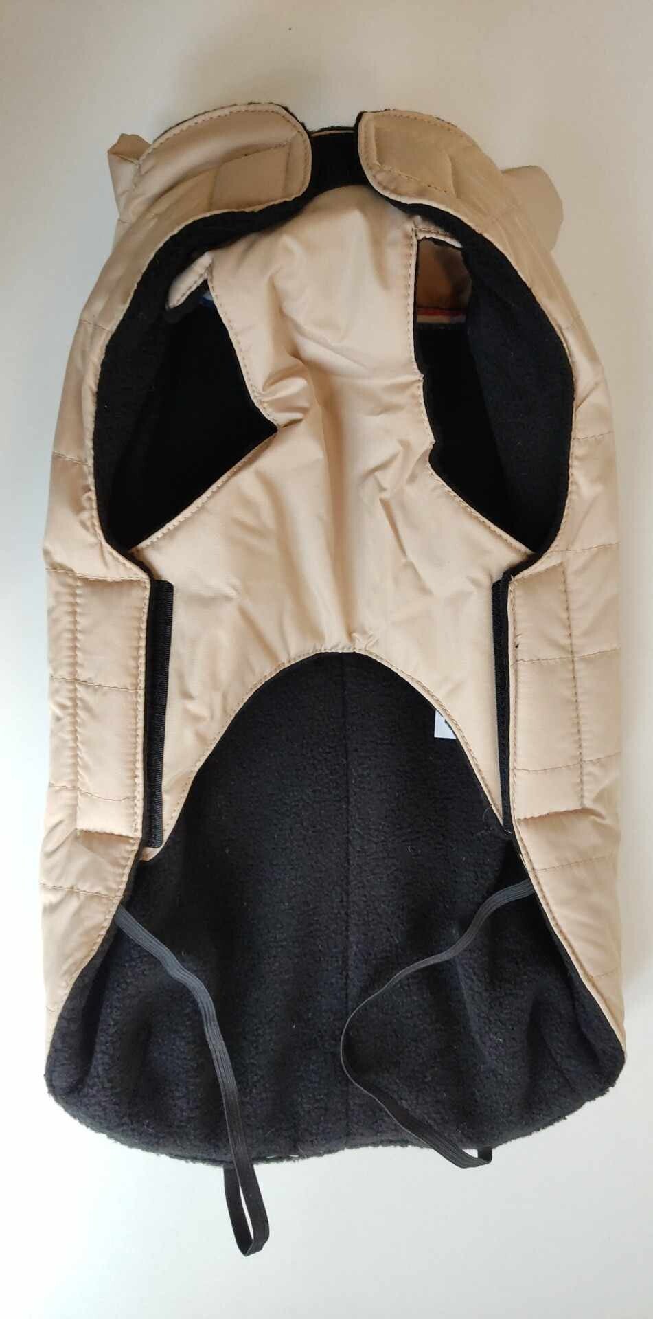 Doudoune douce avec polaire à l'intérieur et rembourrage entre les deux, fermetures velcro au niveau du cou et sur les côtés de l'abdomen