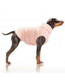 face 1 : fourrure fantaisie rose poudré - face 2 : polyester matelassé gris anthracite (déperlant)
