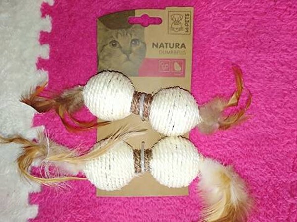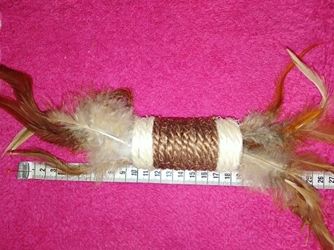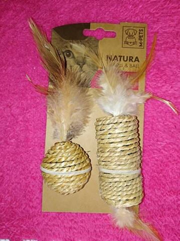 Combi van Sisal en echte pluimpjes, redelijk grote speeltjes