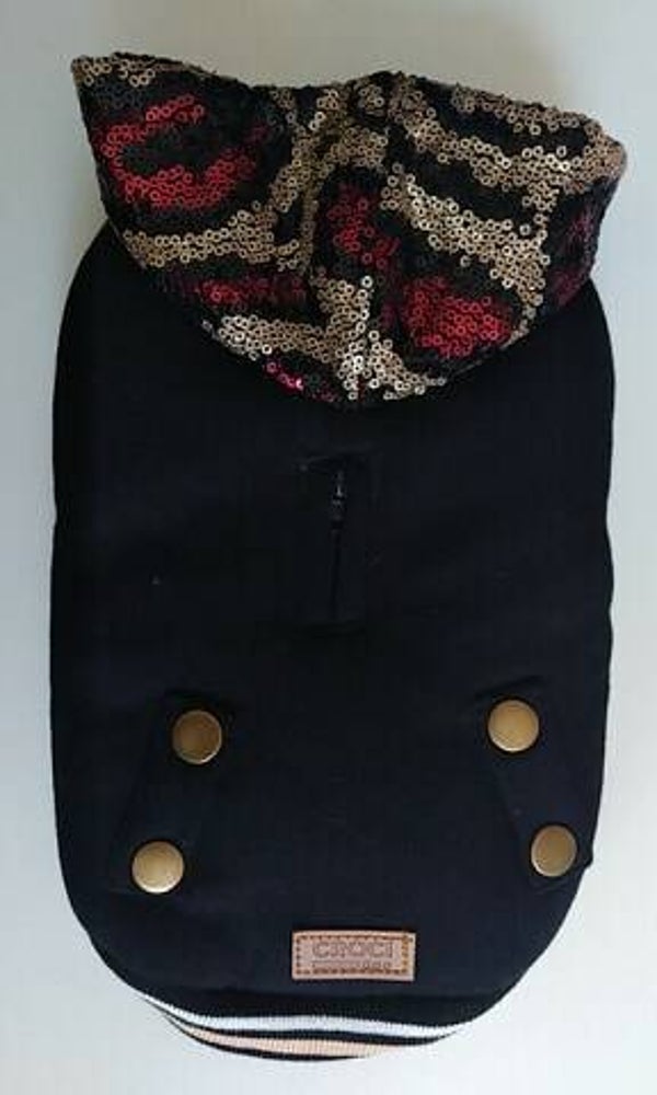 katoen/polyestermet opening rug voor leiband aan harnaskapje fixeerbaar door drukknopjevelcro sluiting op de buik