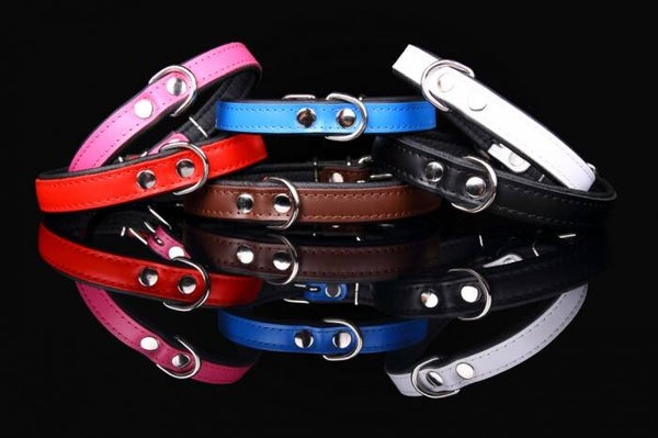 Leder Collar basic rood/zwart
