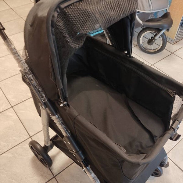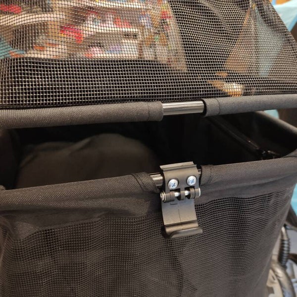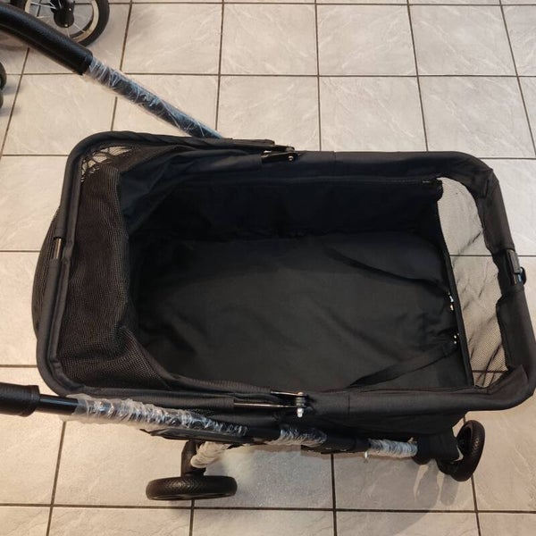 panier : profondeur 55cm, largeur 36cm, hauteur sans dôme 26cm, hauteur avec dôme fermé 50-53cm Roue avant 13 cm, arrière 19 cm Plus facile à attacher et à détacher grâce au système de clic  2 attaches de laisse