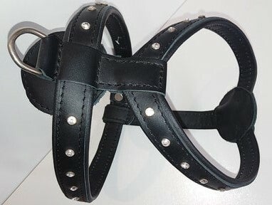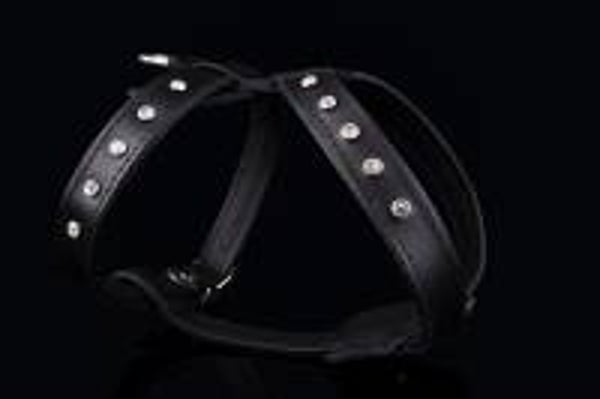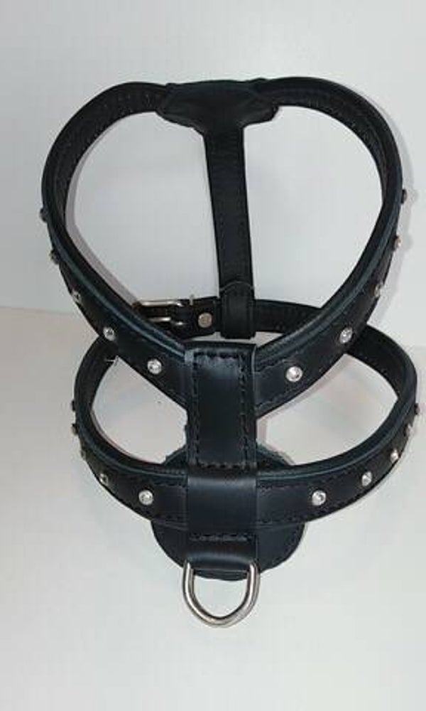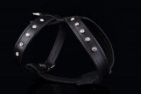 Harnais en cuir double épaisseur robuste avec pierres en cristal incorporéesTour de poitrine: