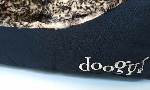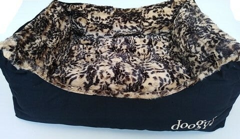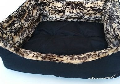 Zachte katoenen mand met pluche safari-print, omkeerbaar, kussen uitneembaar.