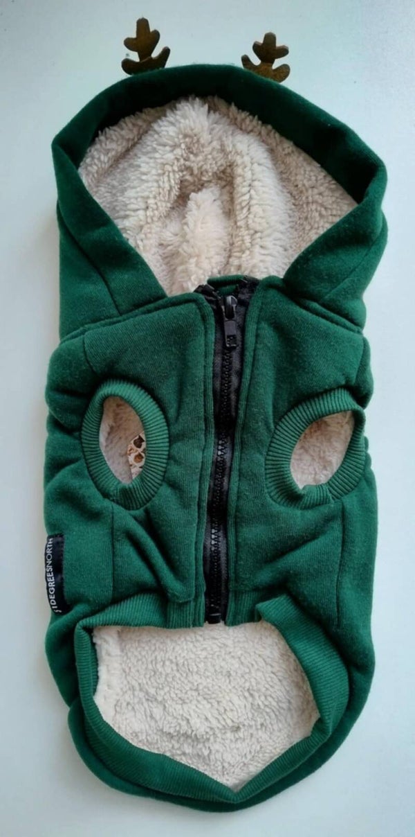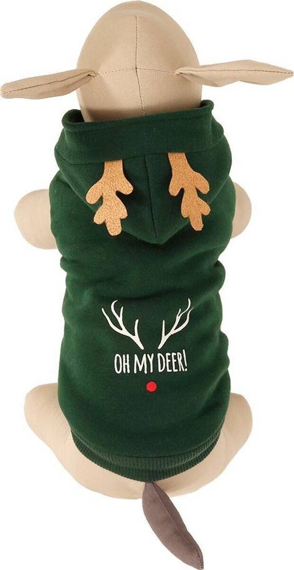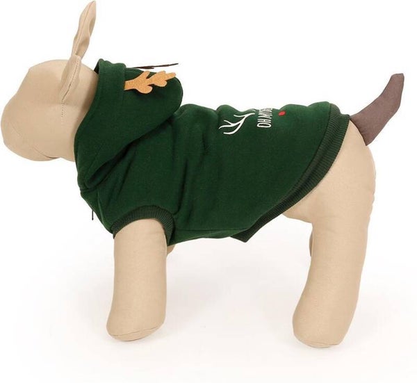 Deze hondentrui is lekker warm, comfortabel en door het rendier gewei komt iedereen, ook de hond, in kerststemming.