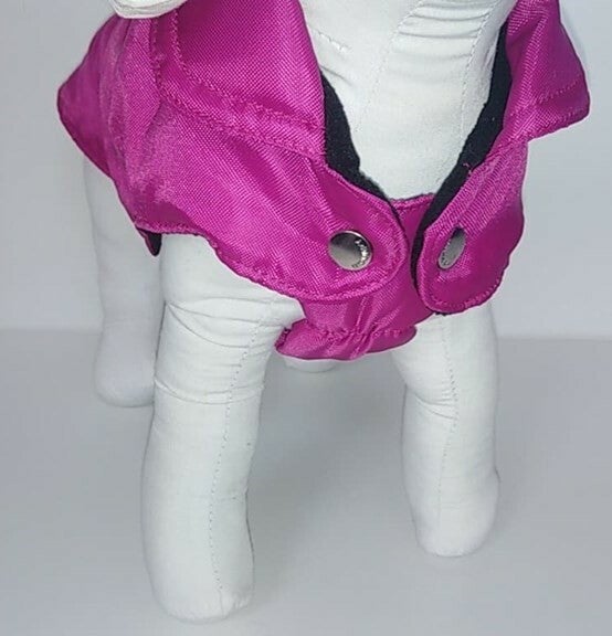 Avec cette veste, vous donnez une autre impulsion positive à la nature, en PVC recyclé! Manteau d'hiver doux, chaud et résistant à l'eau. Fermeture réglable par boutons-pression. Ouverture à glissière prévue pour le passage du harnais. Élastique à attacher à la queue.