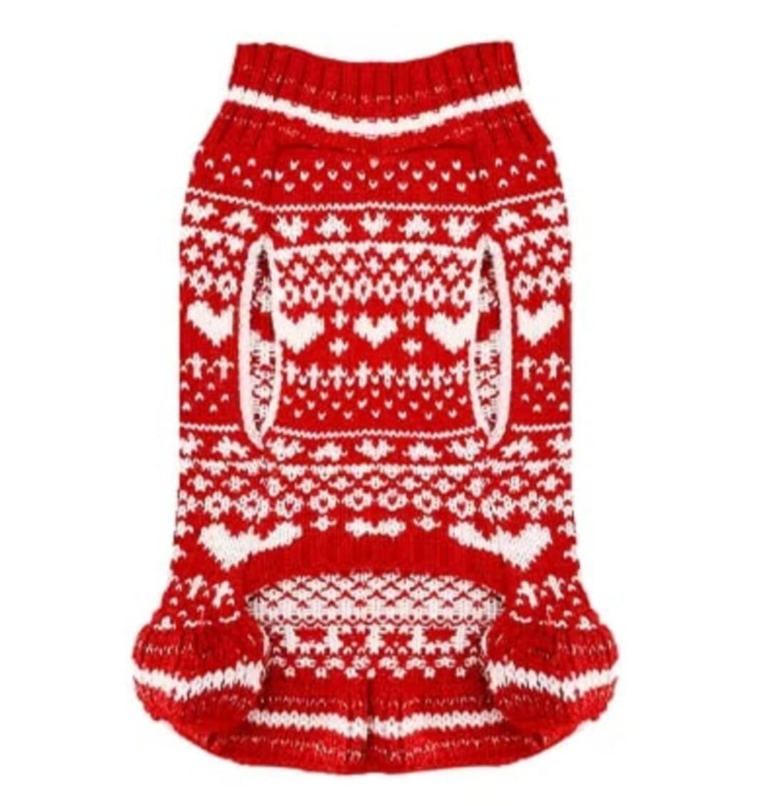 Pull en maille épaisse et extensible. Ouverture pour laisse. Longueur : 45 cm.