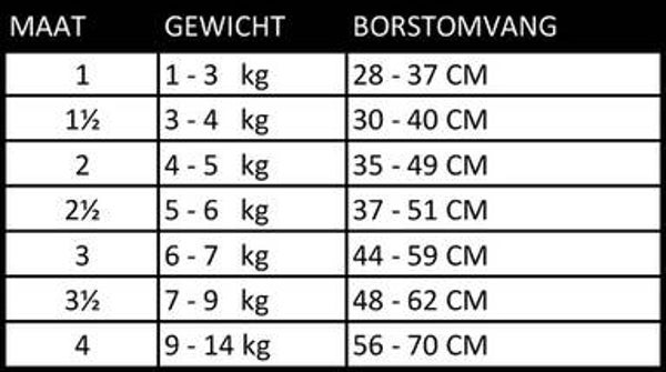 met kliksluitingmaat : aantal kg / borstomtrek