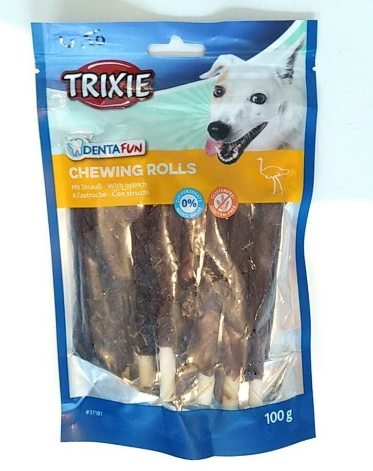 Buffelhuid kauwstokje met Struisvogel-vlees rond