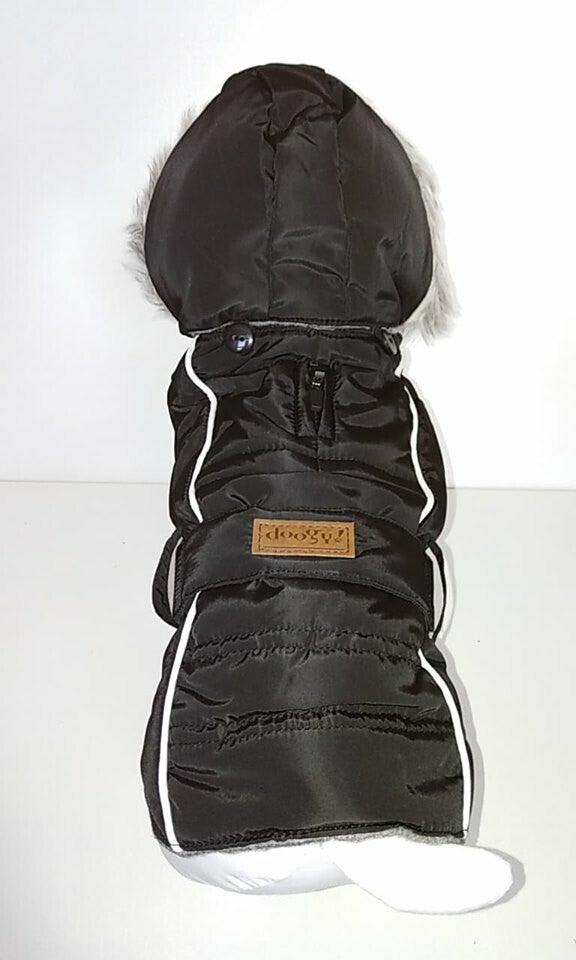 Deze sportieve winterjas kan je niet missen. Op alles voorzien, met velcrosluitingen & elastisch, ritsopening harnas, elastiekje voor staart (maar zit zowiezo mooi op zn plaats!), bontkapje afneembaar (met knopen)