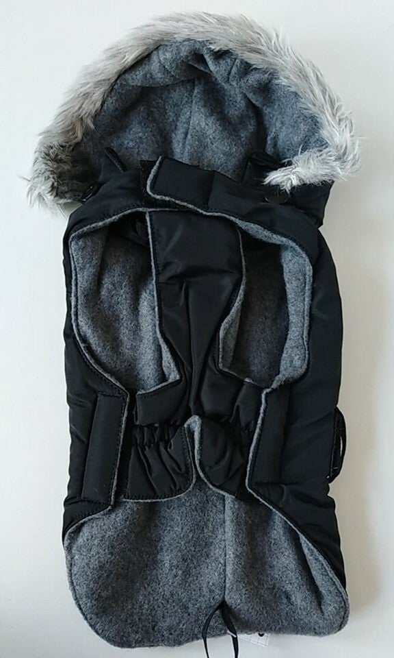 Deze sportieve winterjas kan je niet missen. Op alles voorzien, met velcrosluitingen & elastisch, ritsopening harnas, elastiekje voor staart (maar zit zowiezo mooi op zn plaats!), bontkapje afneembaar (met knopen)