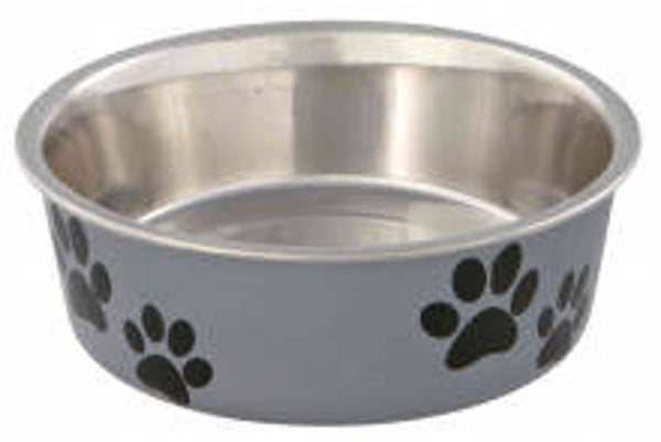 diamètre 14cm, hauteur 4cmacier inoxydableextérieur émailléfond antidérapant en caoutchouc