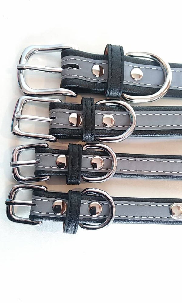 Soepel artificieel leder + reflecterende laagCuir artificiel souple + couche réfléchissanteXS: 32cm x 15mm (21-27cm)S : 37cm x 15mm (26-32cm)M : 42cm x 20mm (28-36cm)L : 51cm x 25mm (35-45cm)