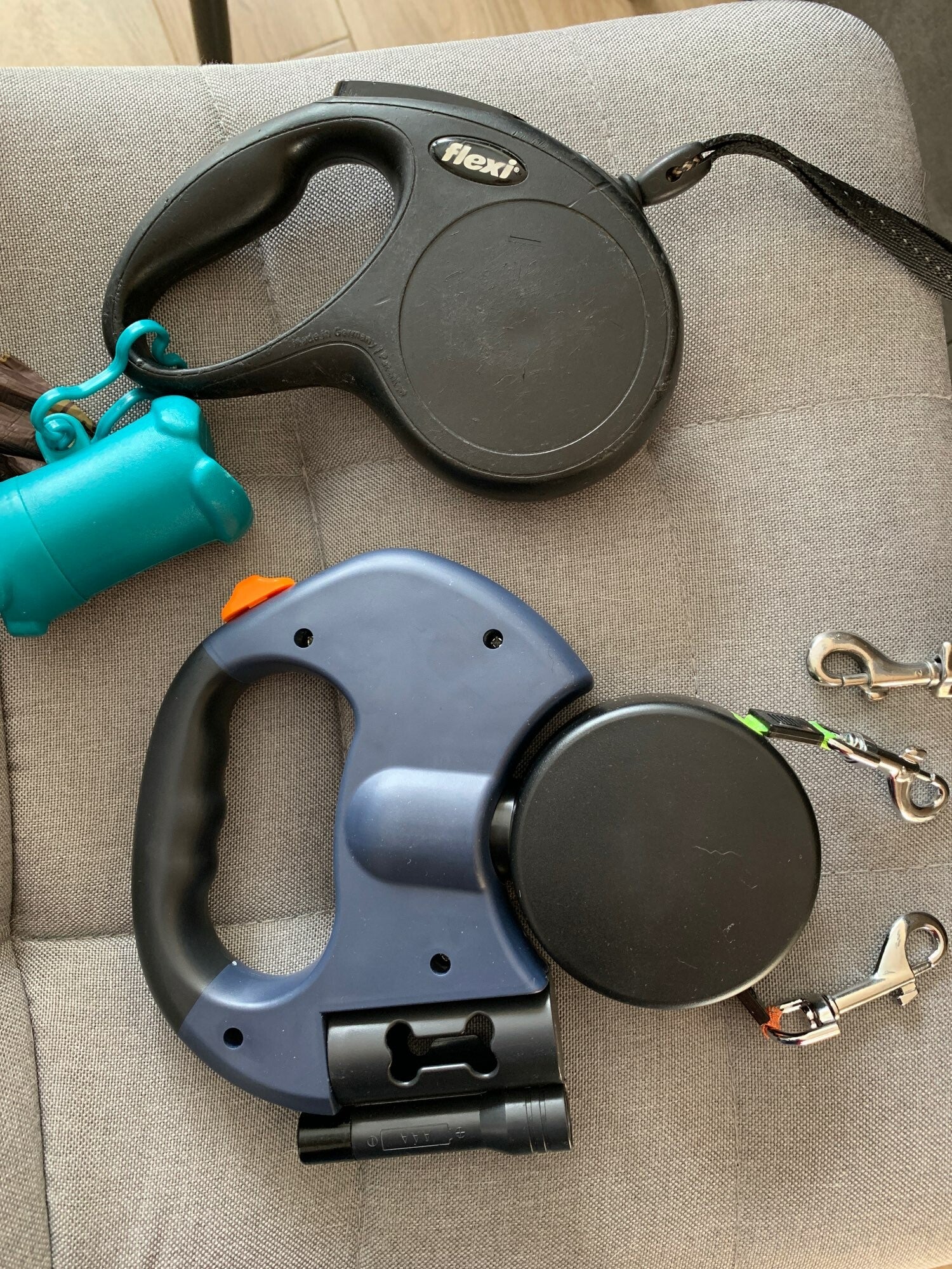 -beschikt ook over een zaklamp en houder voor poepzakjes. Werkt op AAA batterijen (niet inbegrepen).
