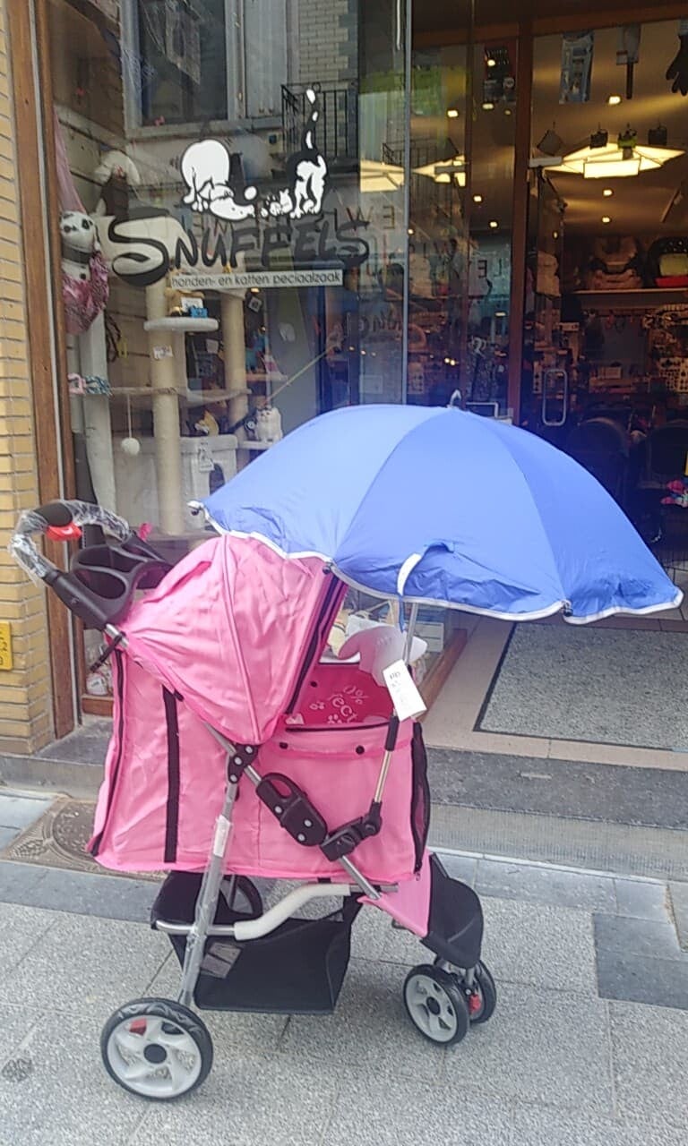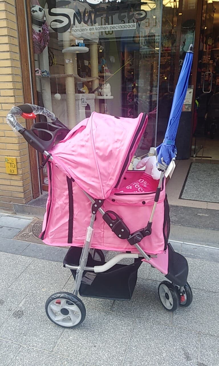 Richtbare steun voor bevestiging op de buggy door middel van een zeer gemakkelijk vast en los te schroeven klem
