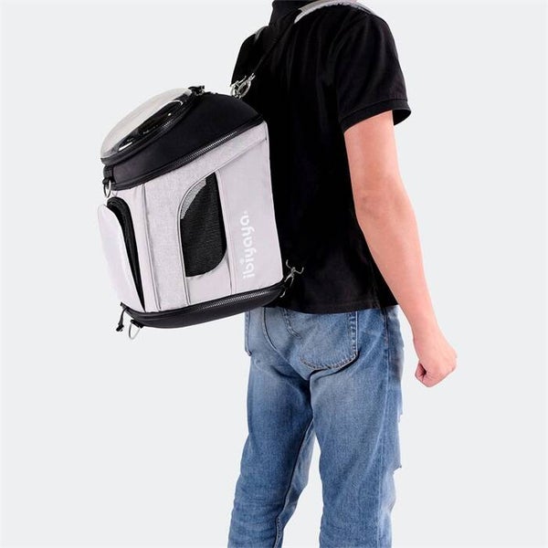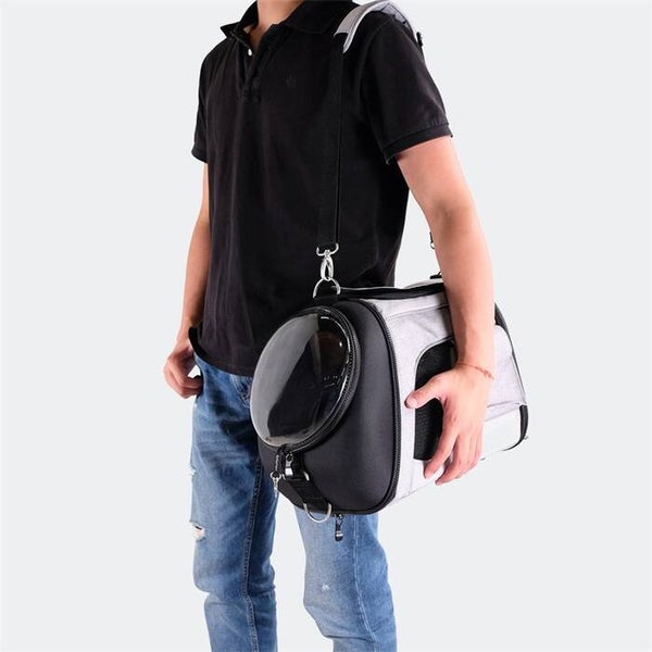 Oui, vous pouvez désormais voyager avec votre animal de compagnie ! Explorer Airline Transparent Pet Carrier Plus est un sac à bandoulière, un sac à dos et un porte-bébé avant en un. Il est assez petit pour tenir sous un siège d'avion, mais aussi assez grand pour être une maison confortable (temporaire) pour la plupart des chats et des races de chiens de petite à moyenne taille pour "en déplacement". Si vous préférez ne pas porter le sac sur une épaule, ce porte-bébé multifonctionnel vous permet de l'utiliser comme devant mais aussi comme sac à dos. L'entrée principale a un design transparent pour que vous puissiez voir à l'intérieur et surveiller votre animal de compagnie. Grâce à cette conception, votre animal a également une vue suffisante sur l'extérieur