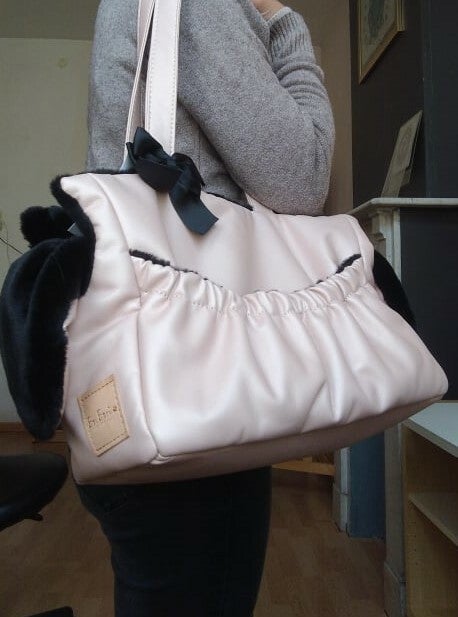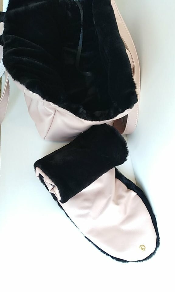 Superzachte zwarte bonte binnenvoering + knus gevuld bontdekentje ( deze kan je via drukknopen vasthechten )