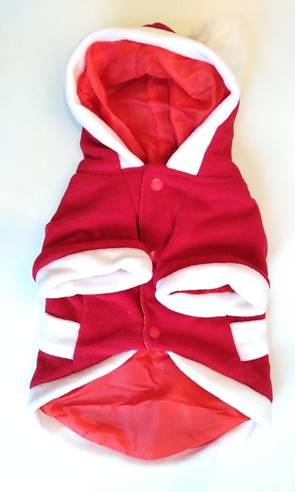 Deze superzachte rode velours kerstjas is gevoerd met witte fleece die zich uitstrekt rond de capuchon en zoom om die authentieke kerstman look en feel te geven, zo seizoensgebonden en praktisch! De jas heeft een witte vilten riem en een pompon op de capuchon. Maak er een vrolijk kerstfeest van voor het hele gezin!
