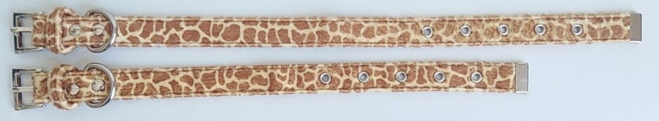 Onze Faux Giraffe-halsband, voelt aan als echt bont, is een eigentijdse dierenprintstijl en is helemaal trendy. Het is een eigentijdse stijl en het patroon is trendy. Het is lichtgewicht en ongelooflijk sterk. De halsband is afgewerkt met chromen details waaronder de oogjes en de punt van de halsband. U kunt er zeker van zijn dat deze stijlvolle halsband van dichtbij en veraf zal worden bewonderd.