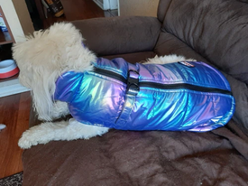 Très beau modèle, agréable et chaud avec polaire à l'intérieur. Crochets fournis pour attacher une laisse (pour les Snuffels qui marchent bien en laisse ;) ). Fermeture par zip au dos.