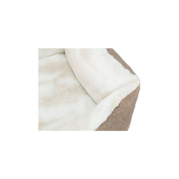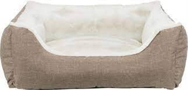Jouw hond zal heerlijk wegdromen in deze comfortabele mand van Trixie. De Hondenmand Nelli is rechthoekig van vorm en voorzien van een opstaande rand die gevuld is met polyestervlies. Dit geeft de mand veel stevigheid en zorgt dat de hond een fijne rand heeft om tegenaan te leunen en tegen op te krullen. Doordat de binnenkant van de mand bekleed is met pluche is de mand heerlijk zacht, en de buitenzijde van geweven stof in taupekleur geeft de mand tegelijkertijd een moderne uitstraling. Het stevig geïntegreerde kussen voorkomt schuiven en de slipvaste onderkant zorgt ervoor dat jouw hond de mand gemakkelijk in en uit kan stappen.