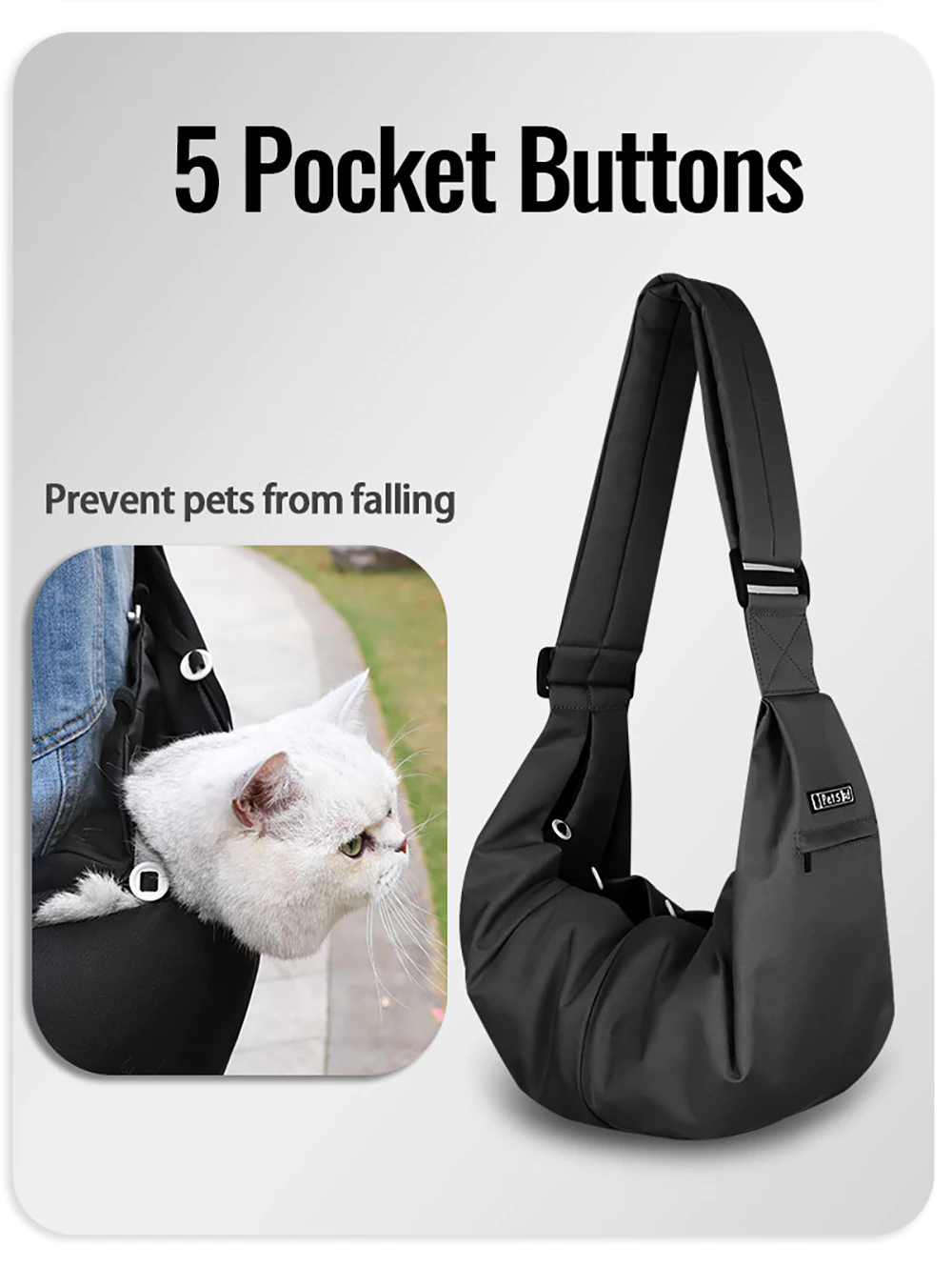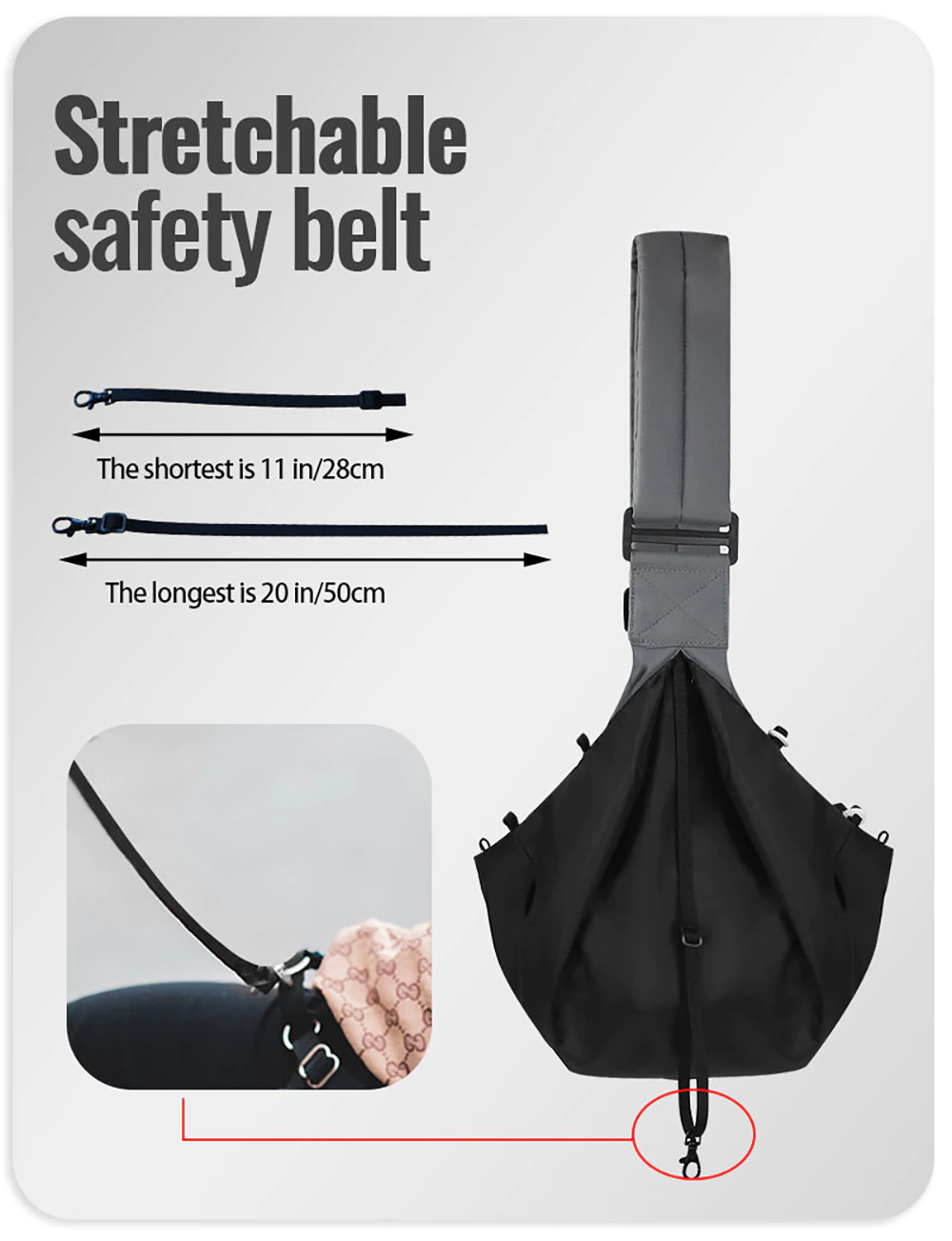 Tissu imperméable en polyester, bandoulière réglable avec mousse souple, poche pour téléphone portable avec fermeture éclair, boucle réglable pour attacher votre Snuffel, la poche peut être rapprochée/réduite avec des boutons