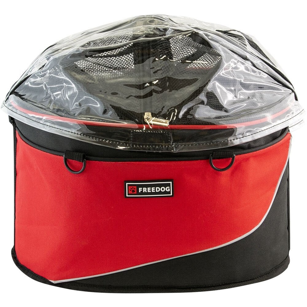 Le sac de vélo est un sac de transport pour vos animaux de compagnie qui s'adapte facilement à tous les vélos. Il a une sangle pour un transport facile et une fermeture éclair sur le dessus pour un accès facile pour votre animal de compagnie. La partie supérieure est faite d'un tissu en forme de filet pour une bonne ventilation, elle comprend également une protection transparente pour les jours de pluie. Supporte un poids jusqu'à 6 kg