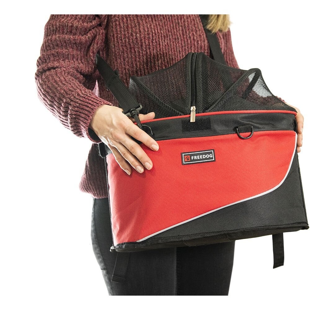 Fietstas is een transporttas voor uw huisdieren die zich gemakkelijk aanpast aan alle fietsen. Het heeft een riem voor gemakkelijk transport en een ritssluiting aan de bovenkant om de toegang voor uw huisdier te vergemakkelijken. Het bovenste deel is gemaakt van een netachtige stof voor goede ventilatie, het bevat ook een transparante beschermer voor regenachtige dagen. Ondersteunt een gewicht tot 6 kg
