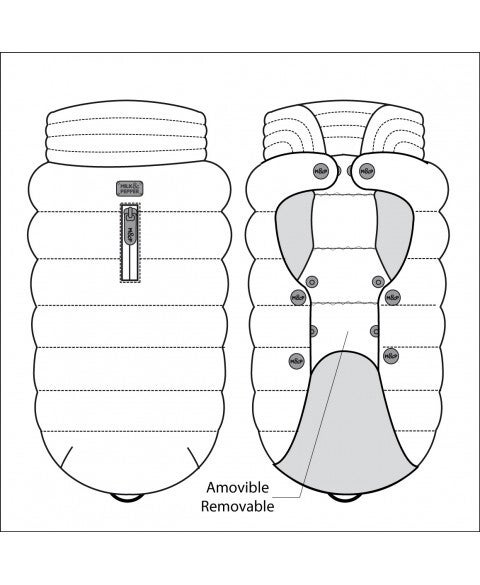 Ouverture sur la partie ventrale par pressions en métal doré gravées "M&P"
